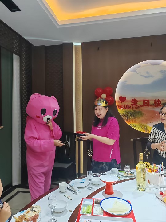 遠在他鄉(xiāng)的員工張鳳珍女士迎來了60歲的生日,退休返聘在這個年紀依舊為公司發(fā)光發(fā)熱,公司體諒員工在這重要的節(jié)日里異地他鄉(xiāng)無家人親屬的陪伴,9月3日,在公司組織文化部的精心策劃和組織下,一場溫馨快樂的員工生日會如期舉行。